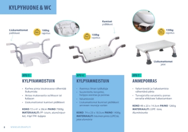 • Antaa mukavuutta suihkuun tai helppo asentaa ja poistaa • Turvajaloilla varustettu porras • Irrotettavat käsinojat • Helppo koota ilman työkaluja